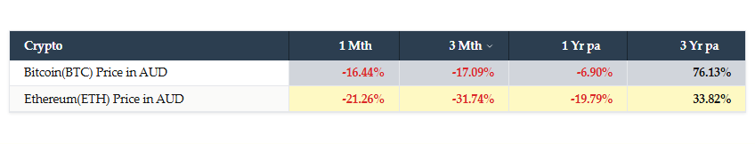 Terrible month of anything crypto and finally a negative annual number, first time in 2 years.