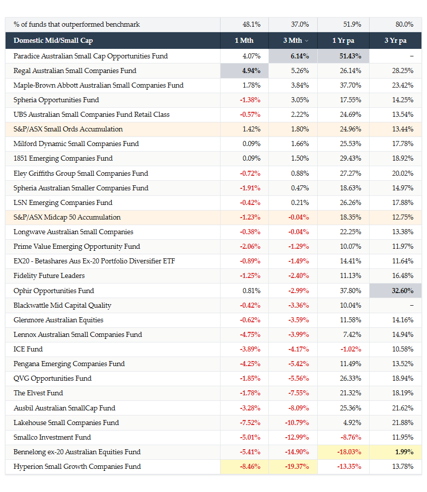 1/5 funds outperformed the benchmark over 3 years, but how much of that is YFYS flows driven and these PMs managing that risk?