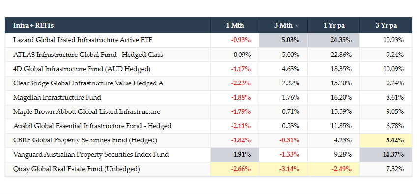 Listed infra has the “private infra put” where privatisation of listed infrastructure assets will occur at discounted prices.