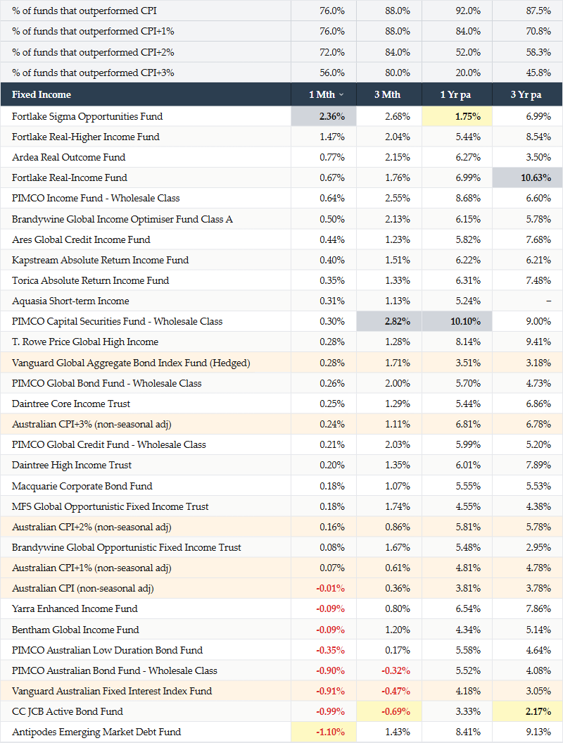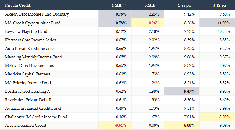 If you look at 3yr returns, there is little difference in outcomes between private credit and the higher yield/higher risk funds in the above Fixed Income table.