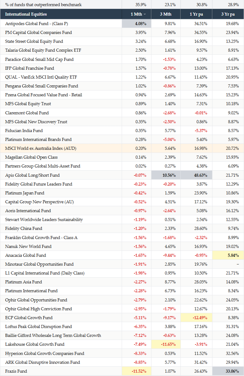 Really enjoy reading these each month. Would be great to see data longer than 3 years (5/7/10 year). One of my favourite screens is for great long term performance and poor short term.