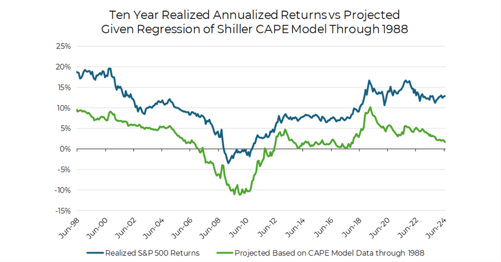 Aptus Capital Advisers have kindly done this for us and realised returns are usually 5-10% above the projected returns based on CAPE data.